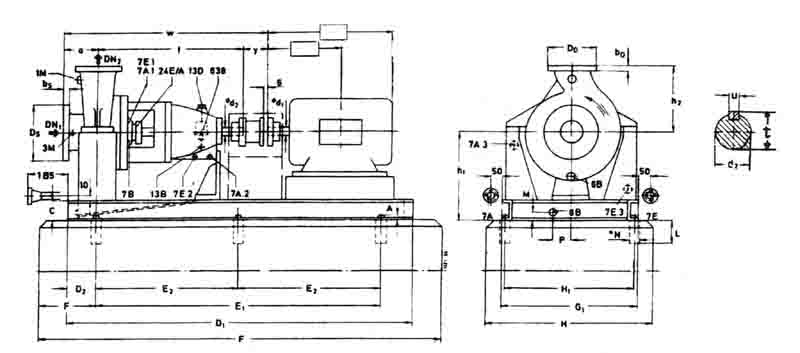 HPK—Y型泵150-250至200-401型配用中間聯(lián)軸器的安裝圖和尺寸表