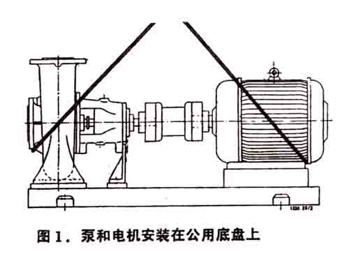 泵組在運(yùn)輸過(guò)程中要小心輕放,按圖示起吊,不允許將起吊繩子拴在電機(jī)的吊環(huán)螺釘上。