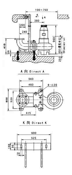 注:JYWQ型自動攪勻排污泵其安裝尺寸參照WQ型潛水排污泵進行。