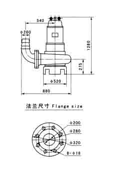 Note:refer to model WQ submersible sewage pump for the installation dimensions of model JYWQ auto-stirring sewage pump. |