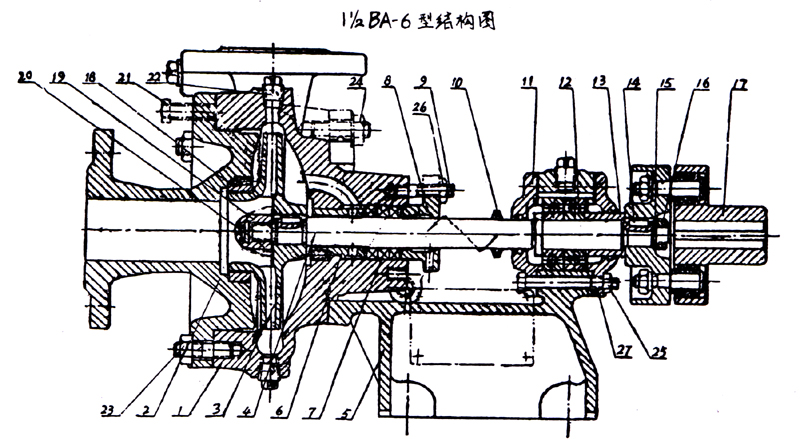 19.葉輪螺母20.外舌止退墊圈21.螺釘22.四方螺塞23.24.25.26六角螺母