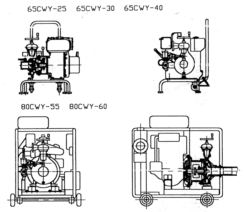 CWY型船用應急消防泵由柴油機、水泵、滑片式泵、機架等組成。